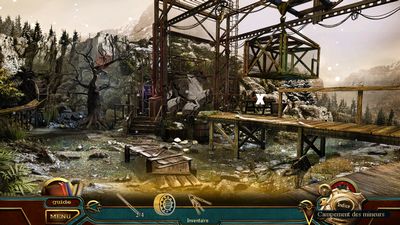 Utilisez le roulement à billes sur les rouages (photo ci-dessous à gauche). Revenez au campement des mineurs et cliquez sur la boite à outils (photo ci-dessous à droite).