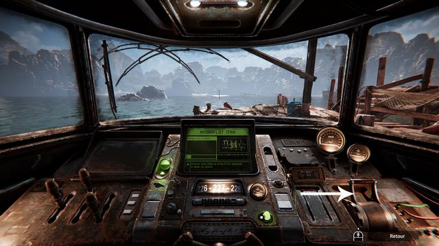 Retournez à l'Hydraflot et utilisez la disquette sur le tableau de bord (photo ci-dessous à droite).