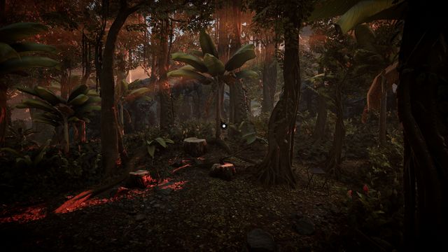 Retournez-vous et prenez le chemin en face, vous arrivez à une souche avec une hache posée dessus (photo ci-dessous).