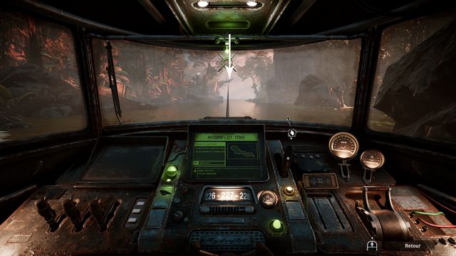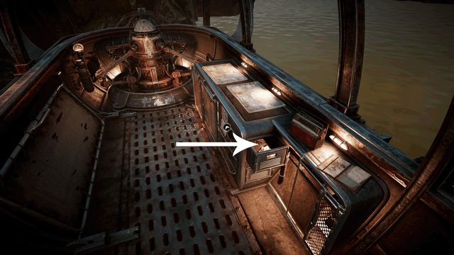 Le grappin est bloqué par des animaux. Retournez-vous puis écoutez la radio de l'Hydraflot, vous débloquez l'indice "Aldrige / Appel radio". Examinez le 1er tiroir, vous y trouvez l'animal qui vous avait aidé à