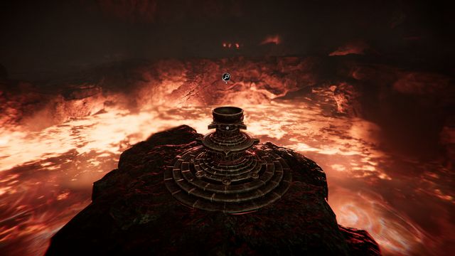 Vous redescendez au niveau du cratère. Faites le tour par votre droite pour rejoindre le socle de l'oeuf (photo ci-dessous). Placez l'oeuf dessus. Utilisez le piolet de cérémonie sur l'oeuf pour l'ouvrir.