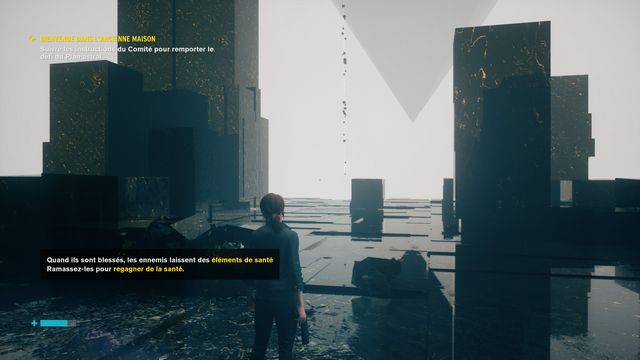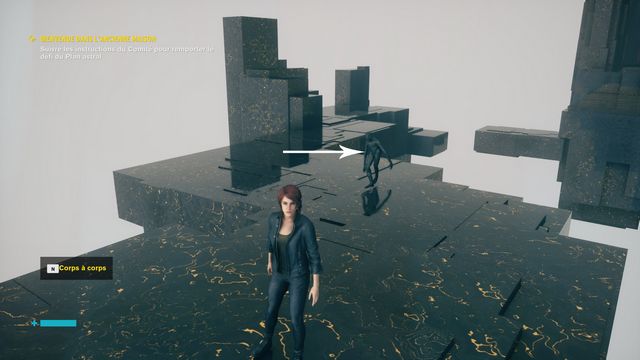 Sautez de plateformes en plateformes (photo ci-dessous à gauche). Tuez l'ennemi que vous voyez au corps à corps (photo ci-dessous à droite).