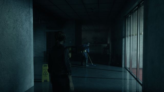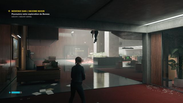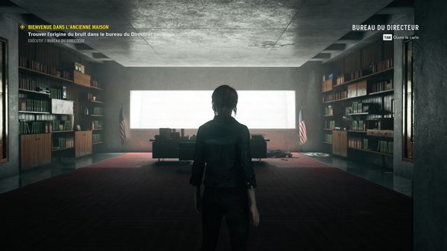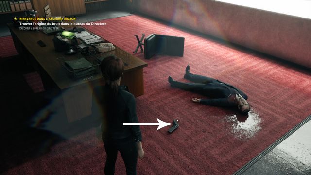 Vous entrez dans le bureau du directeur (photo ci-dessous à gauche). Ramassez l'arme au sol (photo ci-dessous à droite).