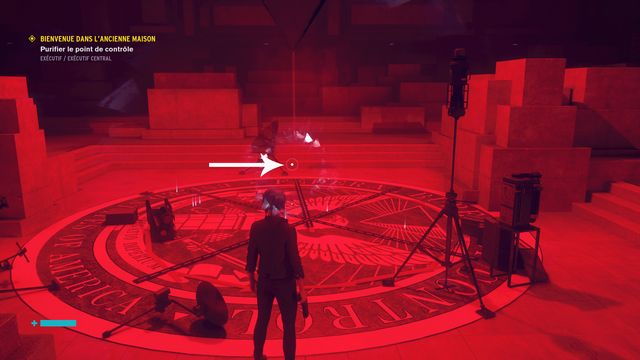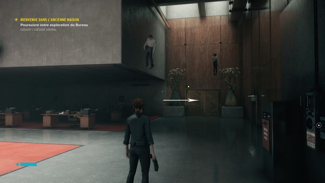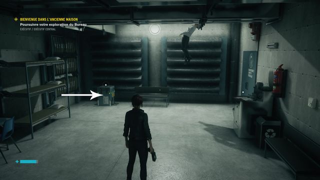 Cliquez sur le container pour le détruire (photo ci-dessous à gauche). Les containers contiennent des améliorations en tout genre. Détruisez-les dès que vous en voyez. Ressortez de la pièce puis dirigez-vous vers le "Executif Centrale" (photo