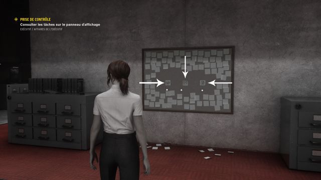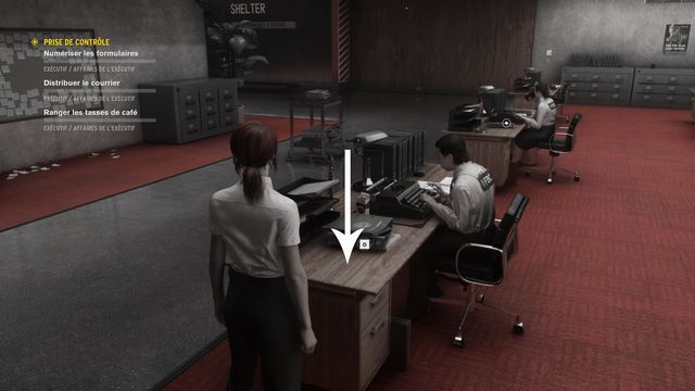 Ramassez le courrier dans la bannette sur le bureau (photo ci-dessous à gauche). Dylan vous tire une balle dans la tête et vous revenez devant le tableau d'affichage des tâches (photo ci-dessous à droite).