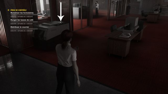 d'affichage des tâches. Reprenez-les tâches mais allez directement appuyez sur le levier pour rejoindre le bureau du directeur. Ramassez le pistolet sur son bureau (photo ci-dessous à droite).