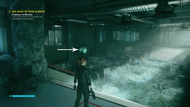 Rejoignez la salle suivante (photo ci-dessous à gauche). Sécurisez la zone et allez cliquer sur le champignon blanc (photo ci-dessous à droite). Vous récupérez le spécimen "E".