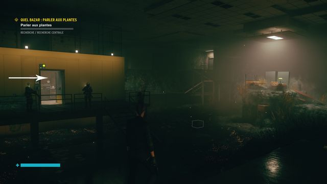 Ressortez du bureau de Marshall par la 2ème porte (photo ci-dessous à gauche). Dirigez-vous vers la zone rouge (photo ci-dessous à droite).