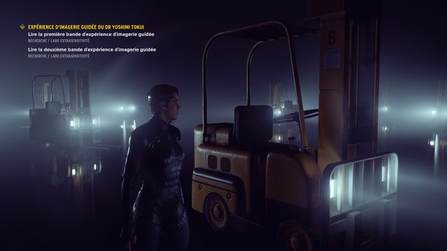 Suivez les phares du chariot élévateur. Plusieurs chariots élévateurs vont apparaître (photo ci-dessous). Lorsqu'on vous demande d'éteindre le chariot, allez vers les chariots, ils vont disparaître un par un. Cliquez sur le dernier