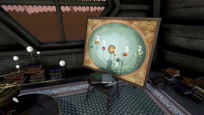 Vous disposez des 3 disques Zoopraxiscope. Rejoignez le laboratoire secret derrière la bibliothèque et posez vos 3 disques sur leurs socles (photo ci-dessous à gauche). Utilisez le monoculaire avec chacun