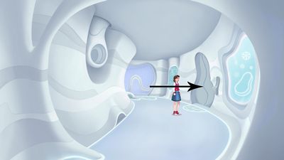 Dans le vaisseau, cliquez sur la porte à droite (photo ci-dessous à gauche), allez au fond à gauche (photo ci-dessous à droite).