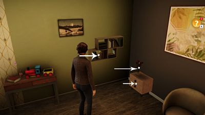 Parlez de nouveau à Mr Armstrong puis examinez le vase et la photo sur le meuble où se trouve des fleurs (photo ci-dessous). Allez à l'étage et rejoignez la chambre de Susanne (photo ci-dessous à droite).