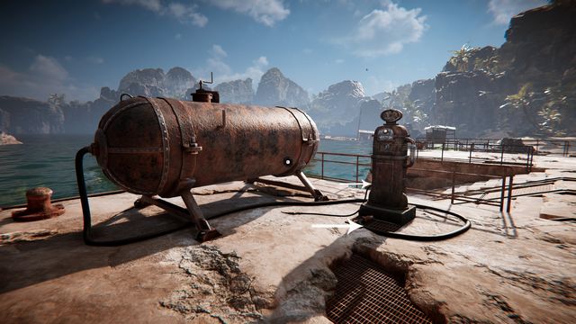 Cliquez sur le container d'air à côté de l'éolienne (photo ci-dessous à gauche) et utilisez la clé à molette dessus. Cliquez sur le couvercle pour l'ouvrir. Cliquez sur le levier suivant (photo ci-dessous à droite)
