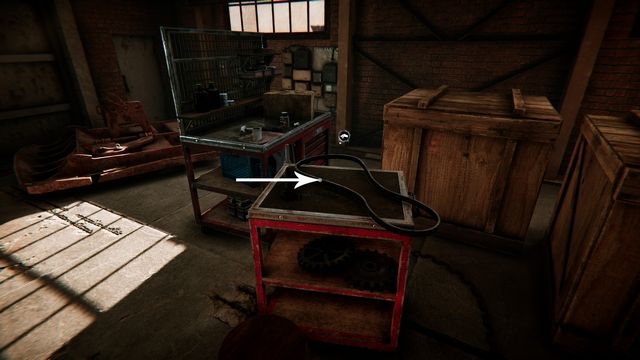 Récupérez "la courroie" sur la petite table à côté de vous (photo ci-dessous). Cliquez simplement sur la courroie pour valider l'indice.