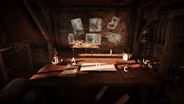 accrochée à l'arbre (photo ci-dessous à gauche). Vous découvrez l'indice "Le soldat Tavares / Avis de recherche". Entrez dans les abris de fortune puis lisez la lettre sur la table (photo ci-dessous à droite).