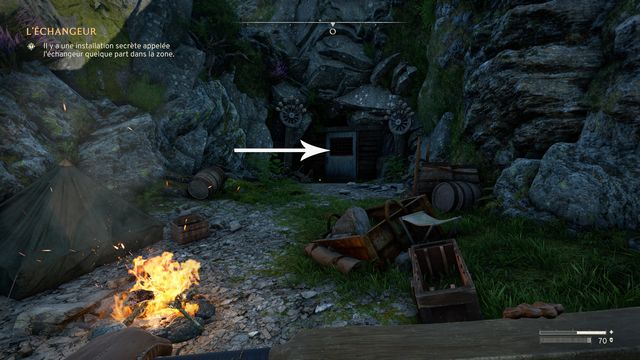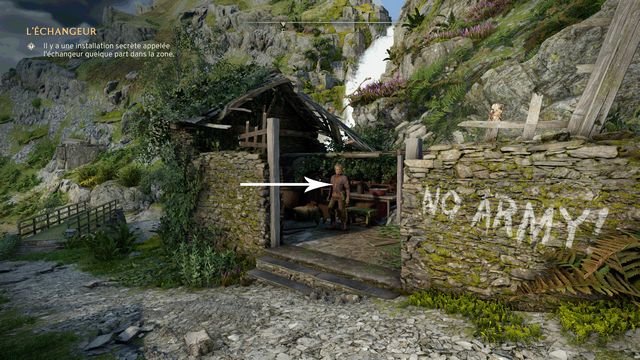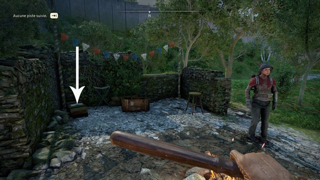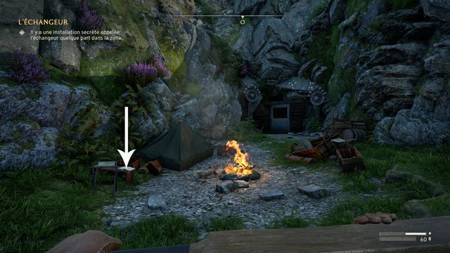 Rejoignez le camp des hors-la-loi (photos ci-dessous) et récupérez "la recette du surin" sur l'établi.
