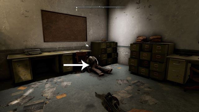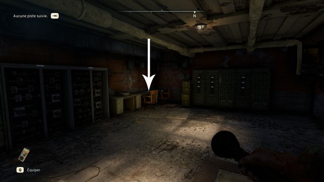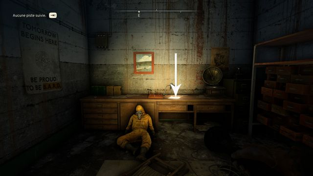 Les ennemis sont sensibles au fusil de chasse (photo ci-dessous à gauche). Vous trouverez un indice de quête sur le bureau suivant (photo ci-dessous à droite), "Echangeur : Entrée de