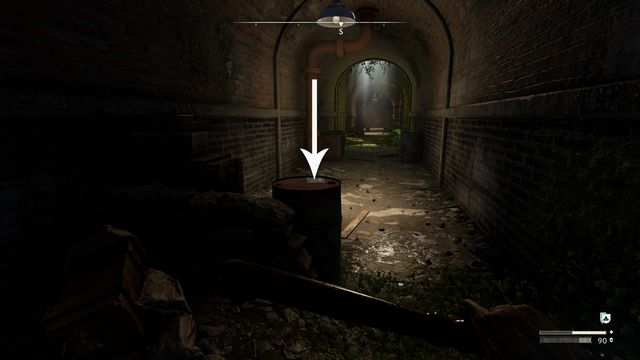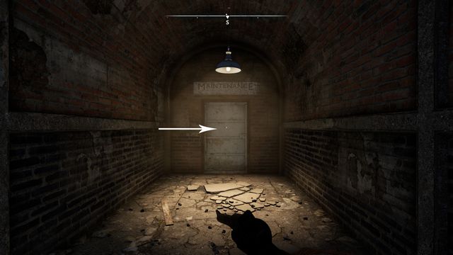 La clé ouvre la porte de la "Maintenance" dans "les tunnels des égouts" (photo ci-dessous à gauche). Passez entre les caisses et l'étagère pour passer de l'autre côté du grillage (photo ci-dessous à droite). Vous