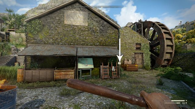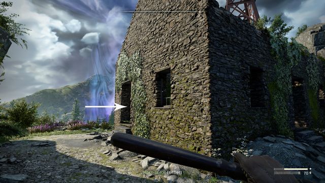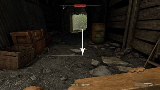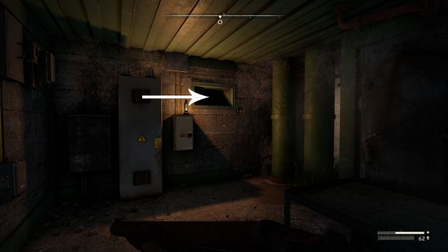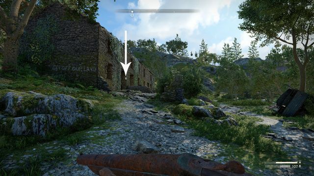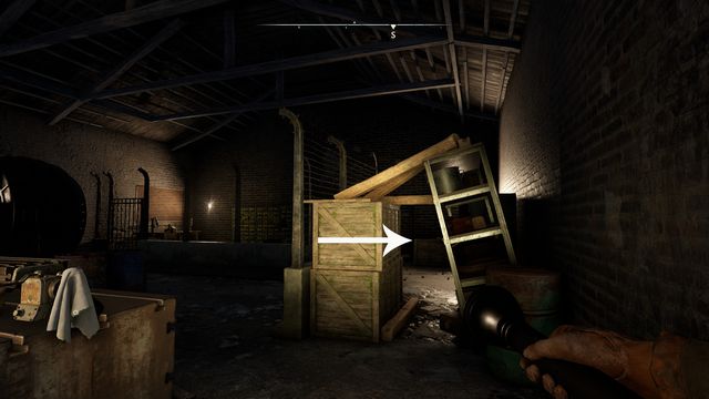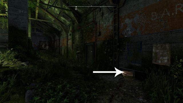 Rejoignez l'endroit suivant puis entrez dans le bâtiment suivant (photos ci-dessous). Rampez pour passer sous la porte.
