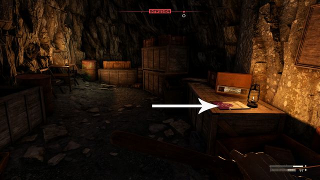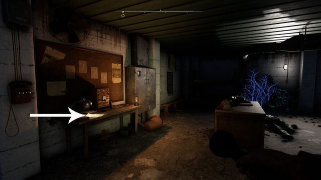 Montez dans le bureau et récupérez l'indice de quête "Bunker abandonné / Appels insensés" sur le bureau (photo ci-dessous).