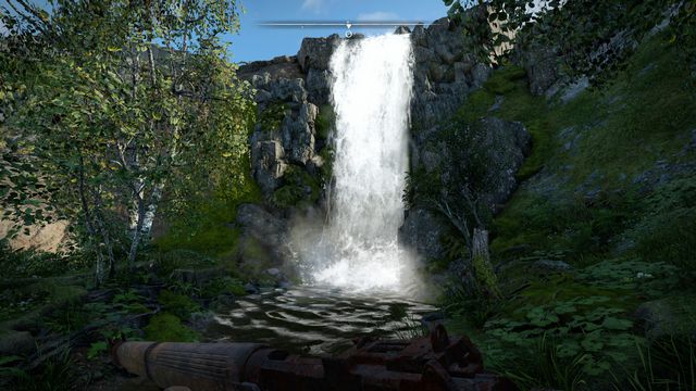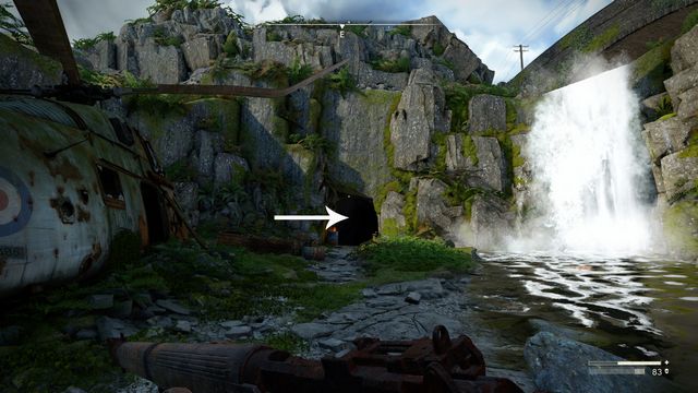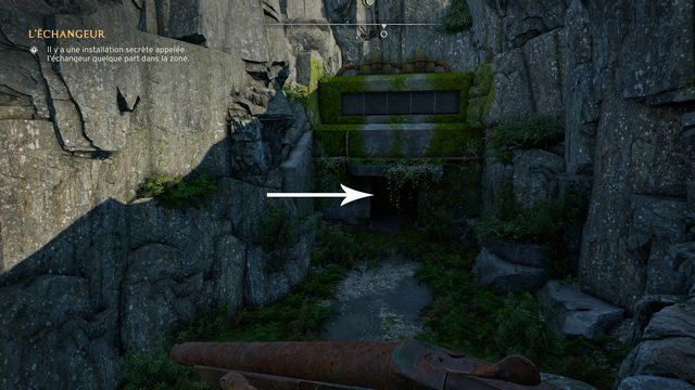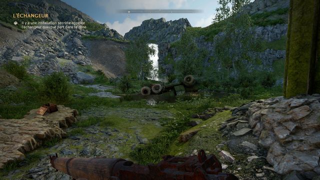 Vous trouverez sur lui le document de quête que vous cherchez "Ordres : Trouver l'échangeur". Passez derrière la cascade (photo ci-dessous à gauche). Fouillez le cadavre au fond de la grotte, vous obtenez un