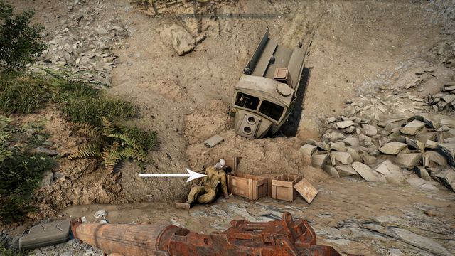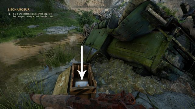 Fouillez bien les cadavres, vous pourrez trouver des armes. Vous trouverez un élément de quête de l'échangeur à l'endroit ci-dessous "Passez le site du convoi au peigne fin" (photos ci-dessous).