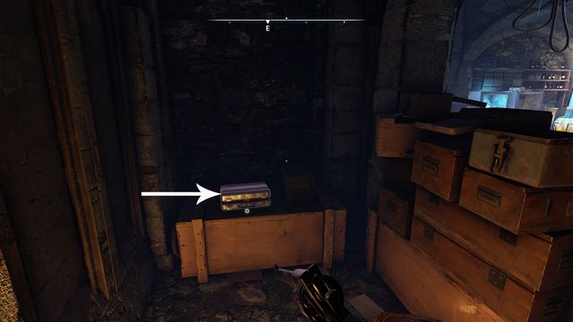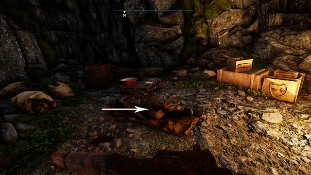 Fouillez la caisse suivante (photo ci-dessous à gauche). Vous trouverez un indice de quête à l'intérieur "Slatten Dale / le journal de William Roberts" ainsi qu'un "stimulant d'entraînement x2". Vous avez un