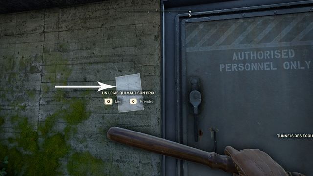 Cliquez sur la note accrochée au mur (photo ci-dessous), vous validez l'objectif "Convoi Cinq / Survivants du convoi en direction de la gare de triage". Vous obtenez en même temps un nouvel indice de