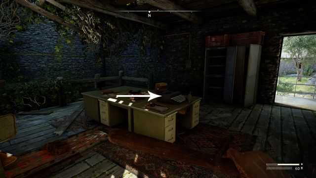 Cliquez sur le document sur le bureau suivant (photo ci-dessous). Vous terminez l'indice de quête "Slatten Dale : entrée de Slatten Dale / Secrets enfouis". Ressortez du bunker puis retournez à la cabine