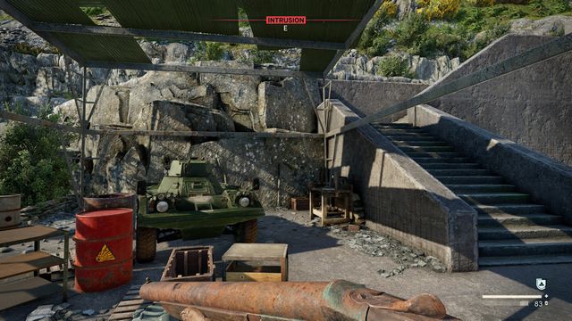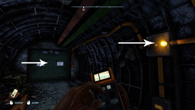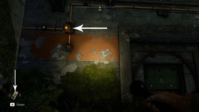 De même pour l'entrée du bunker, quand vous commencez l'aventure, vous avez une porte verrouillée (photo ci-dessous à gauche). Piratez le relais électrique pour l'ouvrir. Récupérez l'indice de quête "Bunker