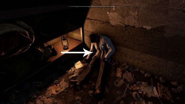Récupérez "la carte d'accès de la tour radio" sur le cadavre au fond de la grotte (photo ci-dessous).
