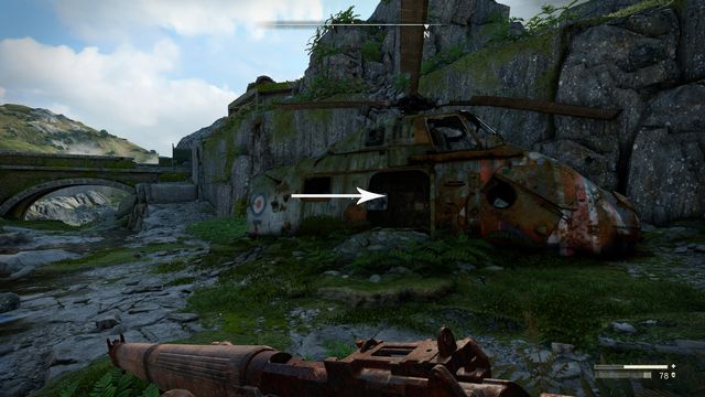 Entrez dans l'hélicoptère et fouillez le cadavre à l'intérieur, vous trouverez un document permettant de valider un indice de quête "Infiltrateurs / Message codé" et "la clé d'Agravaine" nécessaire pour un coffre à