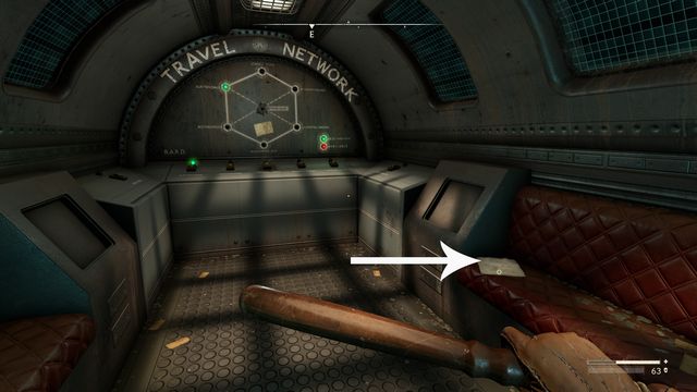 banquette (photo ci-dessous), vous obtenez un indice de quête "Documents du B.A.R.D. / Notes en lambeaux". Pour pouvoir l'utiliser, il faut déverrouiller les autres trappes dans les différentes zones.