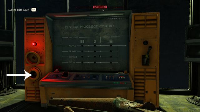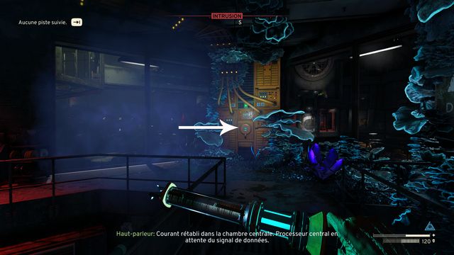 Vous entrez dans la banque de données ALPHA. Entrez dans la pièce en face de vous. Un indice de quête se déclenche "L'échangeur / Banque de données ALPHA hors ligne". Dirigez-vous vers "le central processor" pour