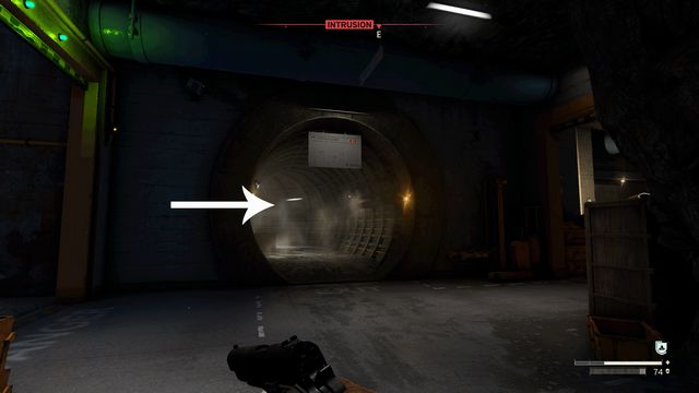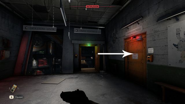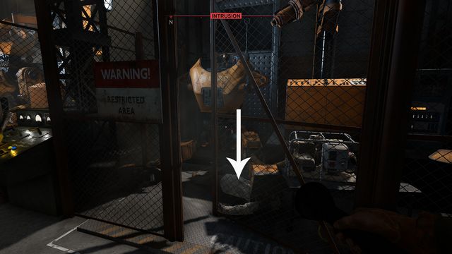 Vous voyez la grue déplacer une caisse, un passage s'est ouvert à l'emplacement de la caisse (photo ci-dessous). C'est un raccourci pour accéder au quartier de détention directement où était