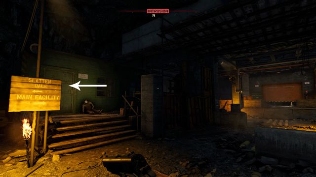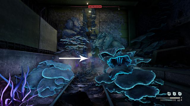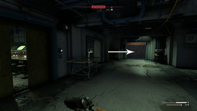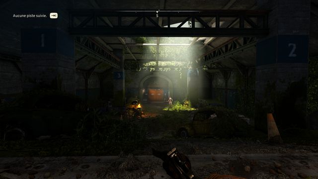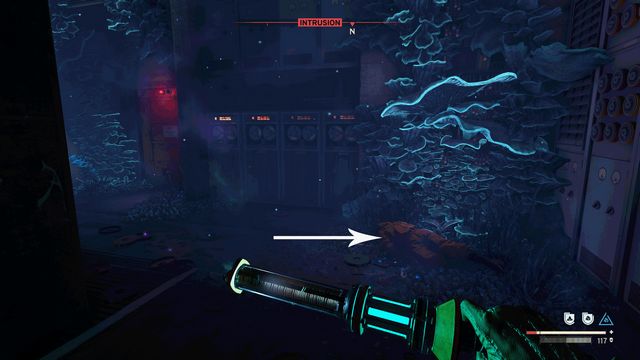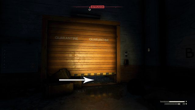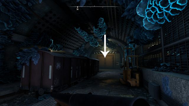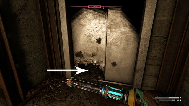 Fouillez le cadavre suivant (photo ci-dessous à gauche). Vous récupérez sur lui un indice de quête "Echangeur : Divers / Des bruits étranges venus d'en bas". Passez sous la porte suivante (photo ci-dessous à