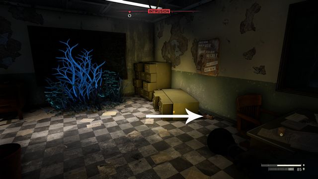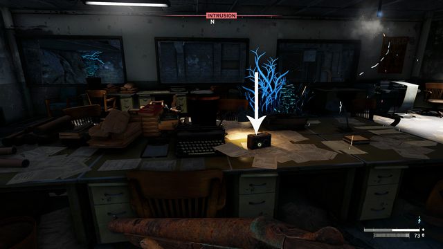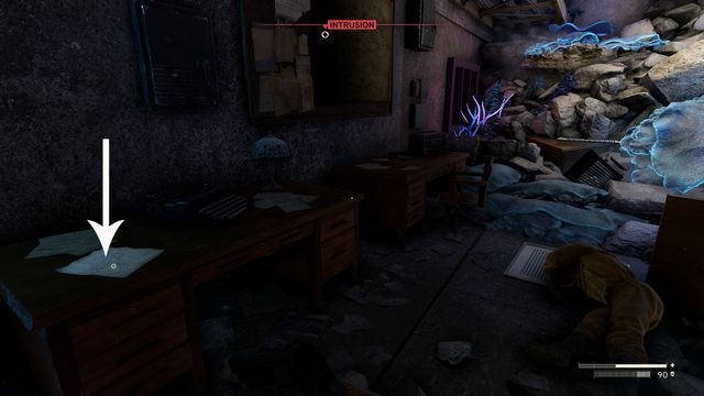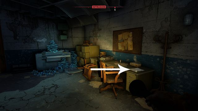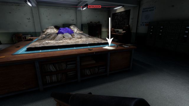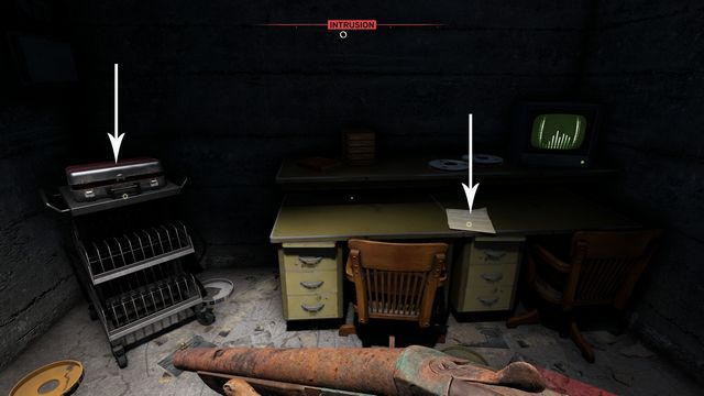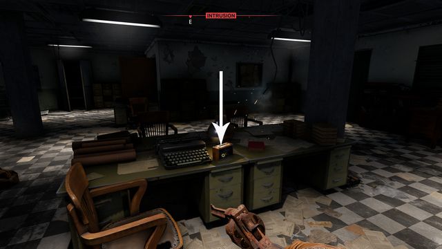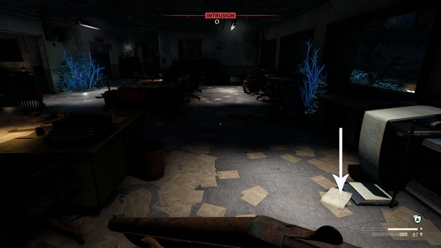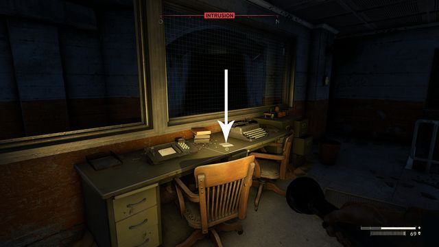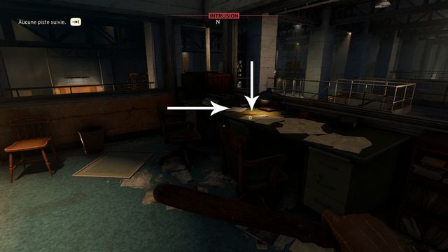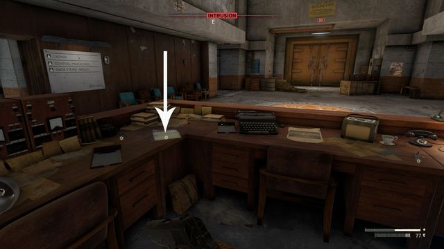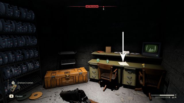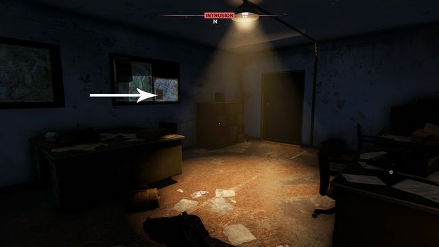 pour être tranquille dans la zone puis les mitrailleuses automatiques. Rejoignez la zone des bureaux au milieu et cliquez sur le document sur le bureau (photo ci-dessous à droite).