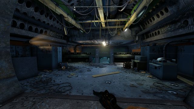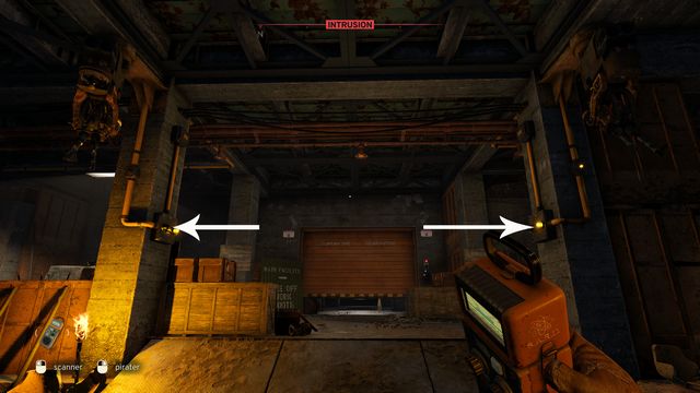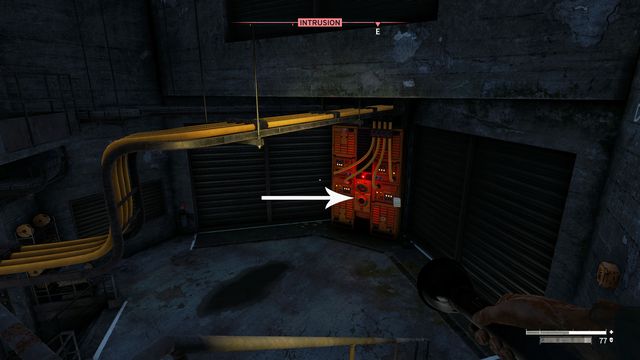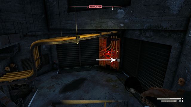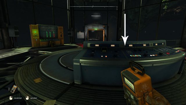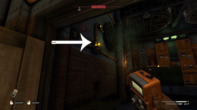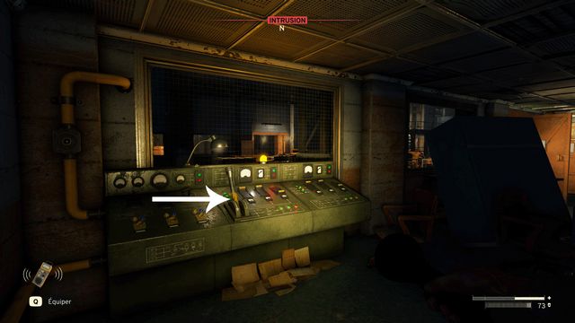 Retournez à la salle de commande des grues et utilisez votre redirecteur de signal sur les boitiers au plafond (photo ci-dessous à gauche). Il y en a 2 à switcher. La console est désormais alimentée (photo