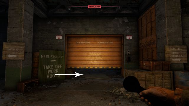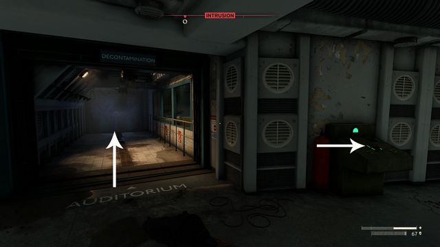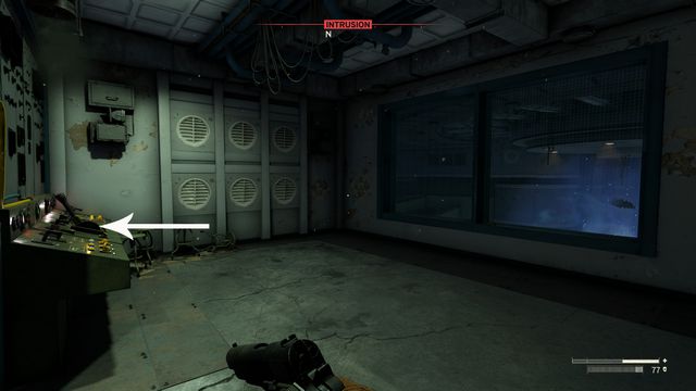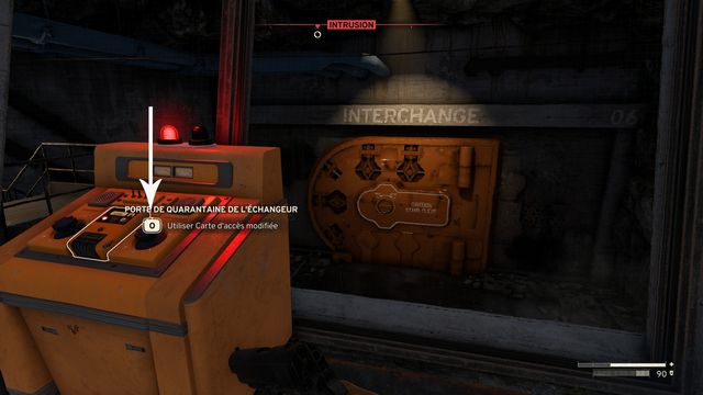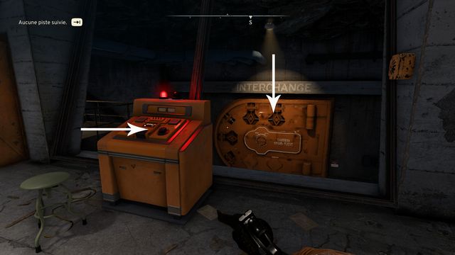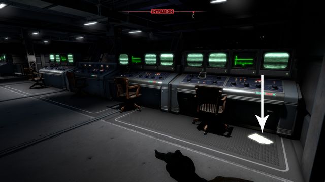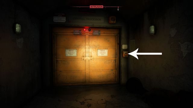 Comme pour la 1ère porte qui vous a donné accès à l'échangeur, allez à l'étage et cliquez sur le panneau de commande pour ouvrir la porte blindée (photo ci-dessous à gauche). Cliquez sur le document au sol dans la