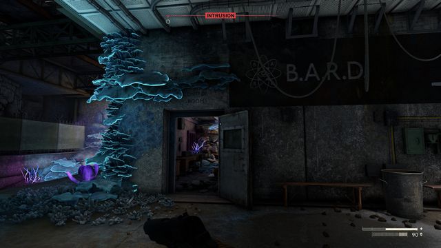 Vous trouverez un autre indice de quête "Documents du B.A.R.D. / Rapport biologique d'Oberon - 30 juillet 1957" dans la pièce à côté (photo ci-dessous à gauche). Faites le tour de la zone et activez les 4