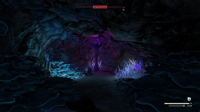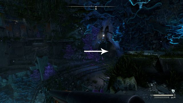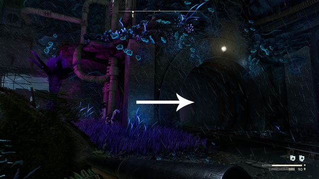 Vous arrivez à une zone de brume bleues provoquée par les spores. Fabriquez-vous des flacons de "L'étrange Tonique" pour résister à la brume. Si vous avez loupé la recette, elle se trouve dans "Les ruines du château"