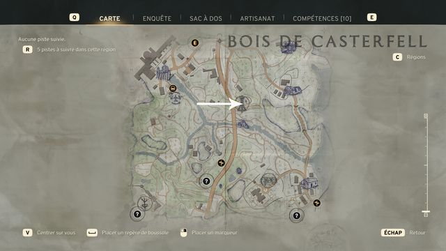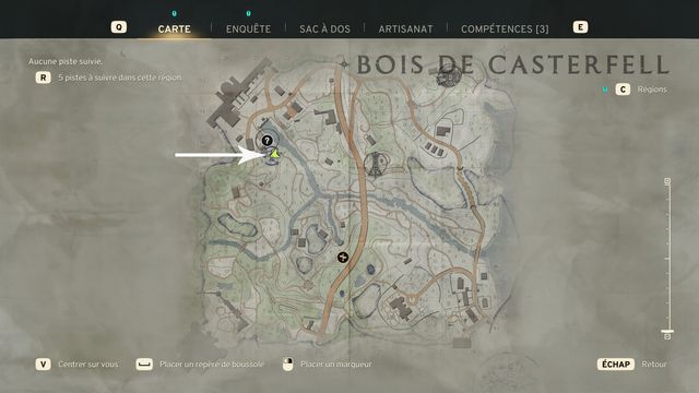 et "Mère Jago / Des voix étranges m'ont dit de trouver mère Jago". Vous la trouverez au Bois de casterfell à "L'ancienne mine". Revenez sur vos pas et repartez vers l'échangeur (photo ci-dessous).