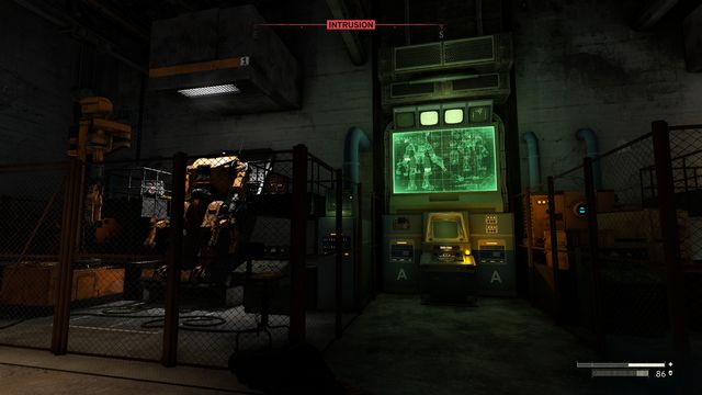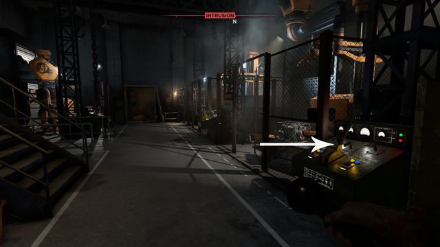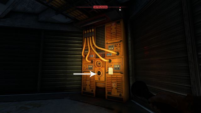 Utilisez le redirecteur de signal sur les 2 boitiers des mitrailleuses automatiques (photo ci-dessous à gauche). Vous remettez l'électricité dans la zone. Entrez dans la salle des commandes de grue (photo