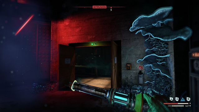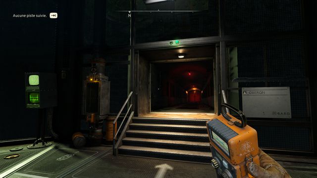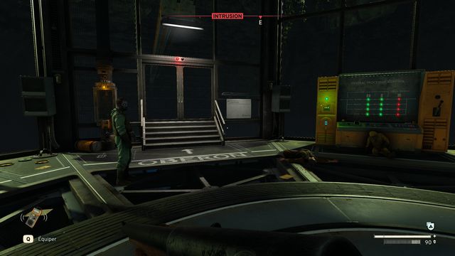 Allez à l'étage puis utilisez le panneau de contrôle pour ouvrir la porte au rez-de-chaussée (photo ci-dessous à gauche). En passant la grande porte blindée, vous validez une grande partie des quêtes de