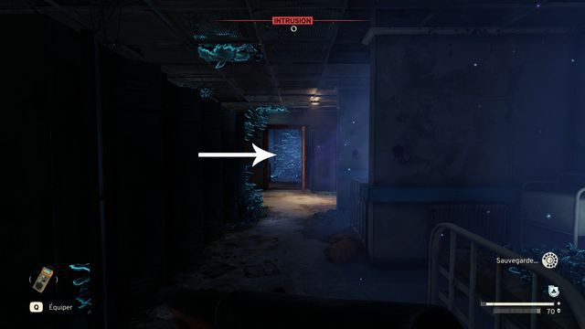 contrôle". Ressortez de la zone robotique et revenez à la pièce suivante (photo ci-dessous à droite).