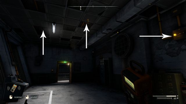 commande. Revenez sur vos pas, vous avez remis l'électricité. Les lumières au-dessus des portes sont allumées (photo ci-dessous à droite).
