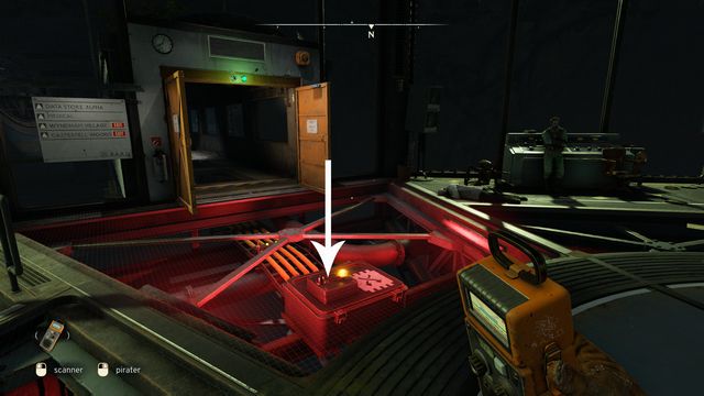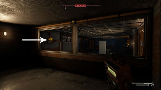 Rejoignez l'endroit suivant (photo ci-dessous à gauche) puis utilisez le redirecteur de signal sur le boitier de l'autre côté de la vitre (photo ci-dessous à droite). Vous débloquez la porte à côté de vous.