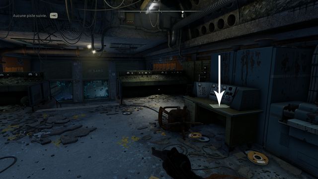 Vous trouverez un autre indice de quête dans la pièce d'à côté "Echangeur : Divers / Rapport sur l'alimentation électrique, mars 1953" (photo ci-dessous à gauche). Revenez sur vos pas puis passez sous la porte