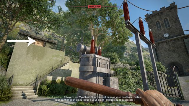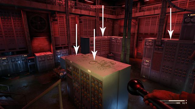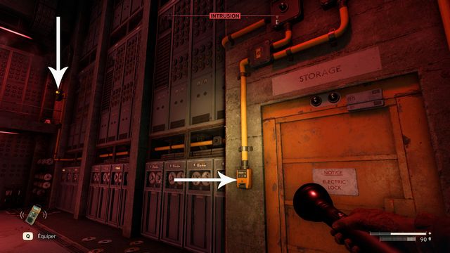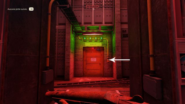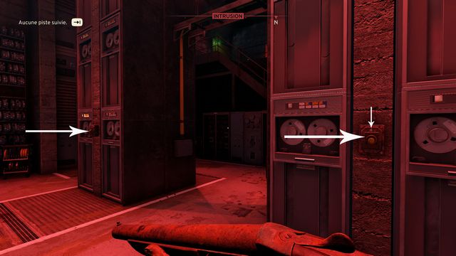 lui "la clé de la réserve de la banque de donnée BRAVO". Le 2ème relais électrique se trouve sous l'escalier (photo ci-dessous à droite). Utilisez le redirecteur de signal. La porte est débloquée.