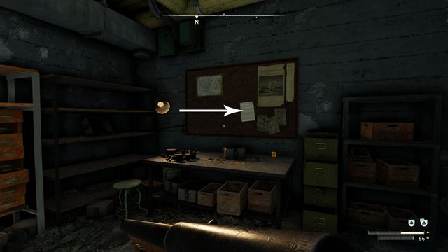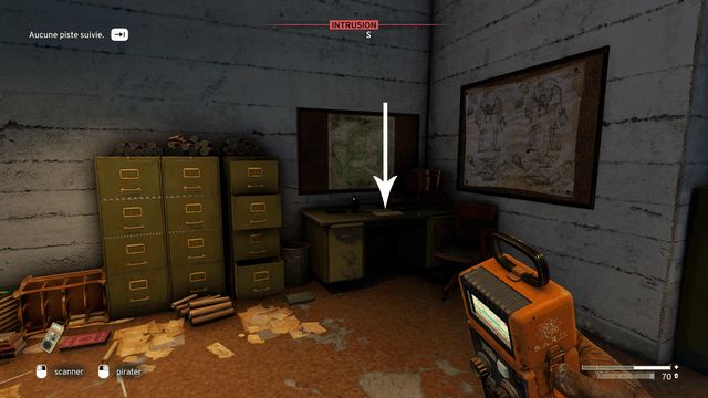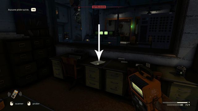 En entrant, vous obtenez l'indice de quête "L'échangeur / La banque de donnée BRAVO hors ligne". Examinez le document sur le bureau à gauche (photo ci-dessous à gauche) Vous obtenez un indice de quête "Batteries